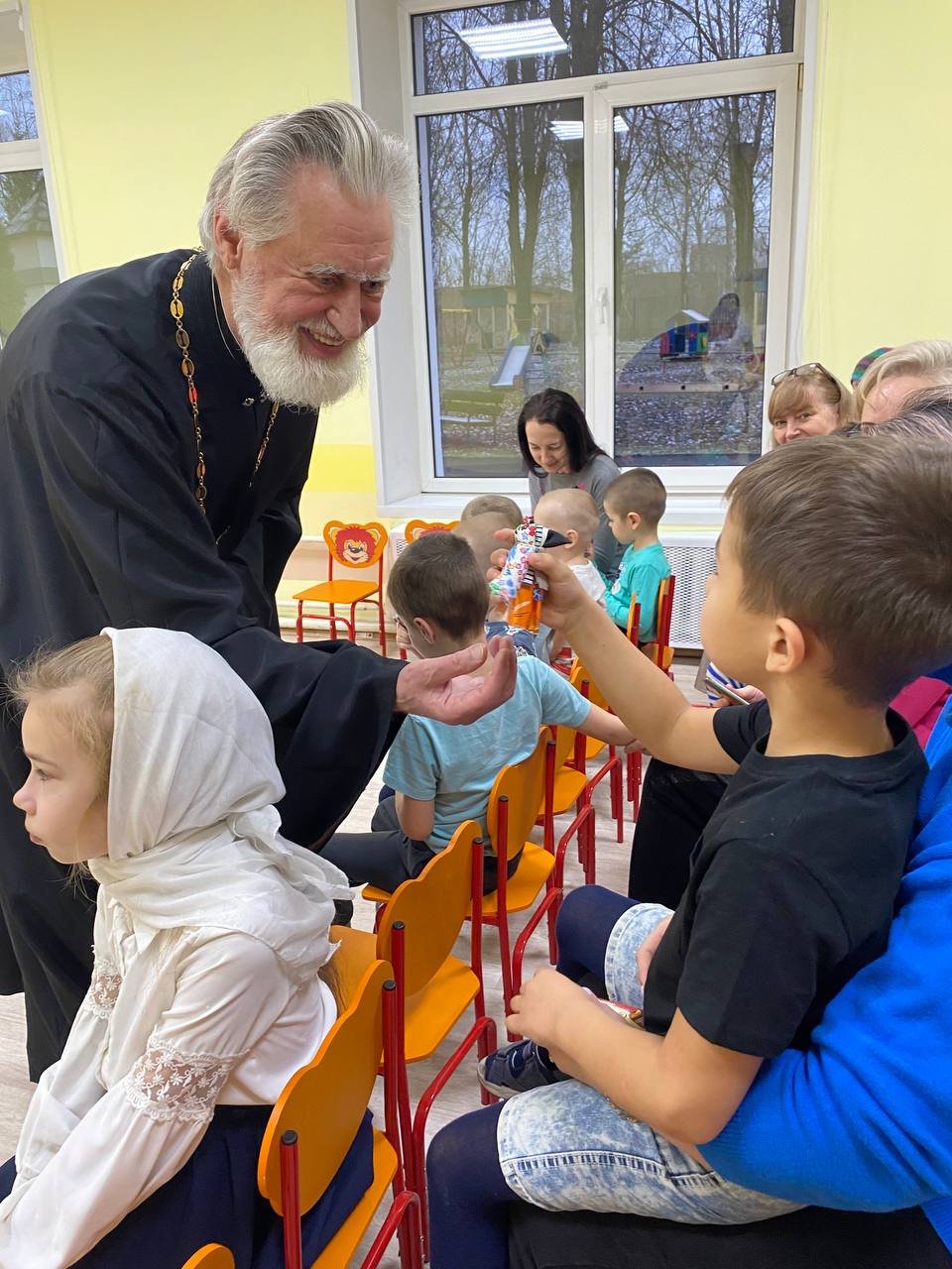 14 ноября клирик Успенского кафедрального собора г. Сергиев Посад иерей Димитрий Осипов навестил своих подопечных в Комплексном центре социального обслуживания и реабилитации «Оптимист». Вместе с ним в гости к маленьким пациентам с концертной программой приехали и учащиеся воскресной школы храма. Для маленьких зрителей они исполнили песни о Родине, прочитали стихотворения и загадали загадки, показали кукольную инсценировку "Осенняя песенка". По завершении выступления батюшка угостил благодарных зрителей шоколадками и подарил каждому забавные народные игрушки, сделанные в школе из ткани руками учащихся. От Сергиево-Посадского благочиния Центру о. Димитрий передал наборы развивающих пособий для занятий с детьми. Сотрудники выразили гостям большую признательность за концерт и подарки.