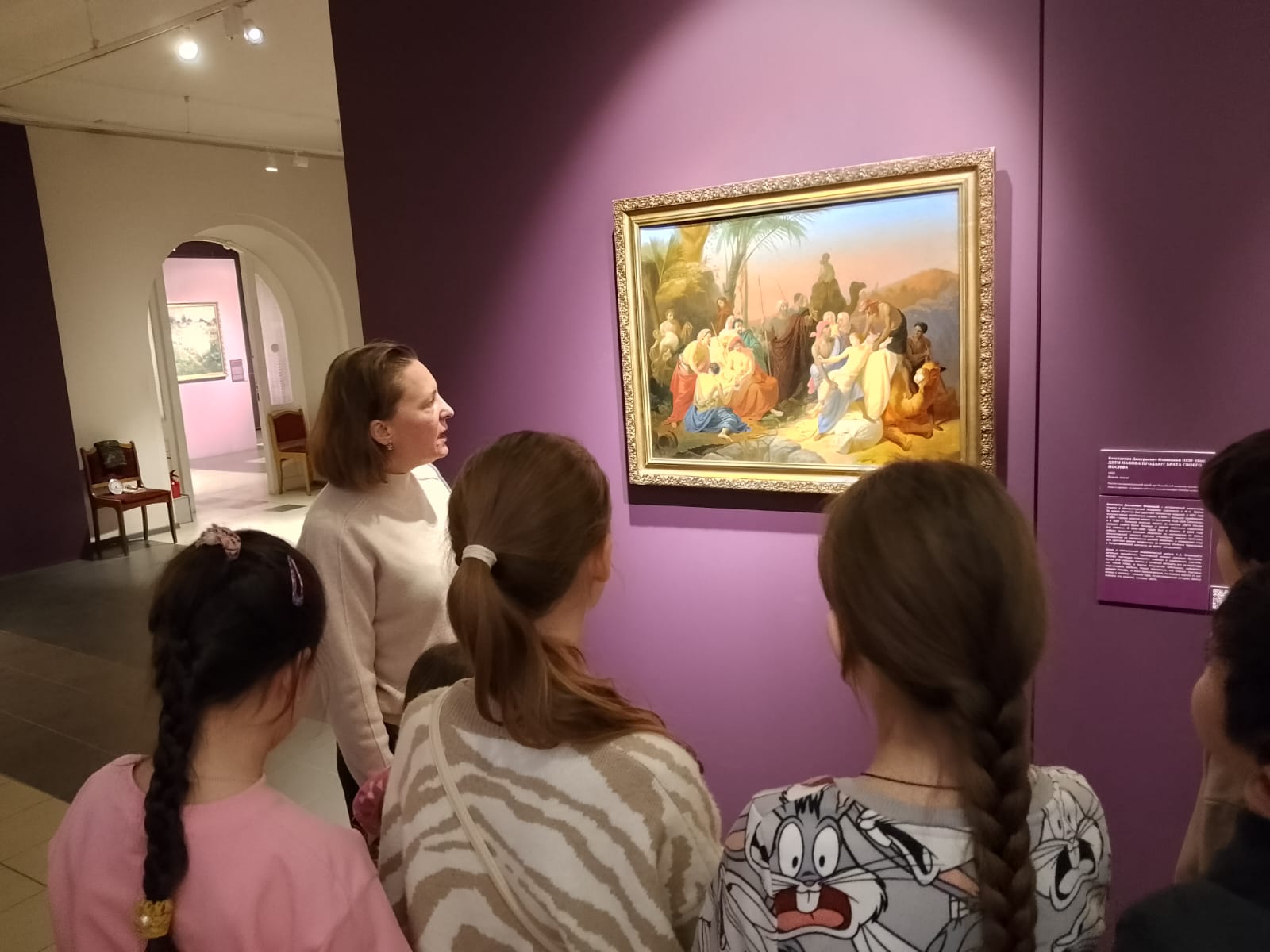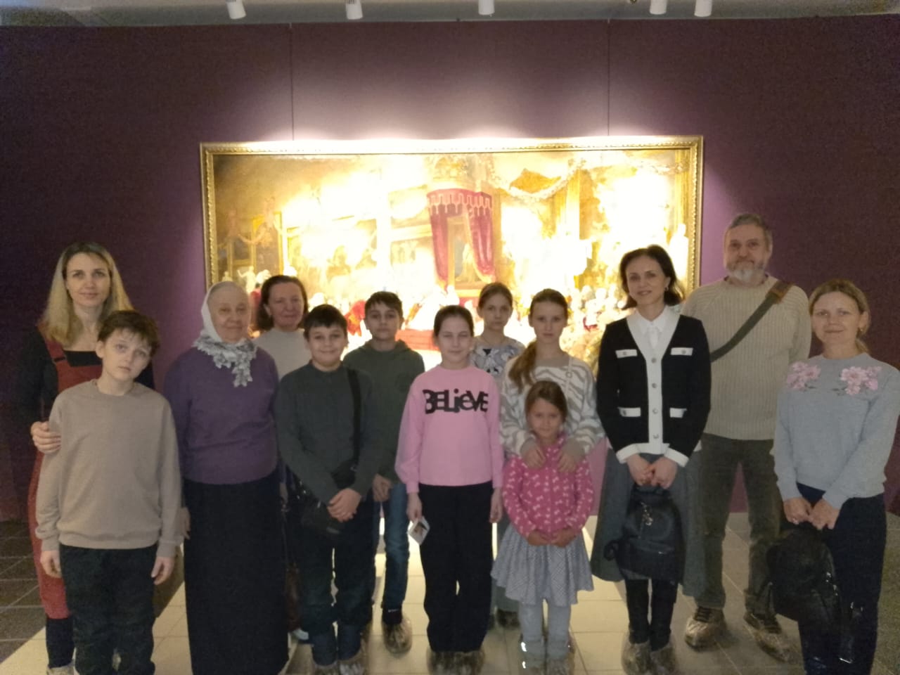 22 февраля группа учащихся воскресной школы Успенского кафедрального собора г. Сергиев Посад вместе с родителями и преподавателями побывала в Сергиево-Посадском музее-заповеднике на выставке «Шедевры Императорской Академии художеств». В наш город впервые привезли полотна XVIII – нач. XX века кисти В.А. Тропинина, В.Л. Боровиковского, И.И. Шишкина, В.Д. Поленова, В.В. Верещагина, М.В. Нестерова, И.Е Репина, И.И. Левитана, М.З. Шагала, К.А. Коровина и многих других выдающихся русских художников. В двух залах Главного корпуса Музея разместили около 50 произведений, большинство из которых входят в собрание Научно-исследовательского музея Академии и его филиалов (Санкт-Петербург и Ленинградская обл.). Представленные 35 авторов – знаменитые выпускники первого отечественного художественного вуза, их конкурсные и ученические работы – поистине шедевры.Поскольку программа в первую очередь проводилась для детей, то и форма знакомства с живописными произведениями была выбрана в соответствии с их возрастом. Самые маленькие через игру и загадки знакомились с экспонатами и жанрами живописи, известными художниками. Те, кто постарше, отправились на квест. Они разгадывали шарады, ребусы, шифровки, правильные ответы указывали на картины выставки, которые в свою очередь нужно было внимательно рассмотреть и выполнить задания по ним. В итоге, собрав пазл, детям предстояло определить, какое произведение загадал ведущий. Ненавязчиво участники программы познакомились с историей ИАХ, запомнили имена её знаменитых выпускников, задержали свои взгляды на первоклассных образцах русского изобразительного искусства.